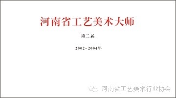 2002年至2004年根据我省机构改革的实际情况,省工艺美术行业协会听取了各方面的意见和建议,请示原省轻工行业管理办公室,开始了河南省工艺美术大师的评审组织工作。