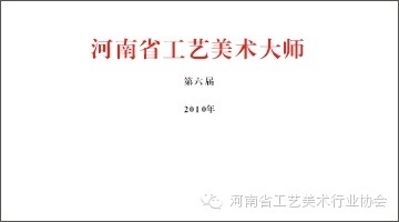2010年河南省工业和信息化厅下发了"关于开展第六届河南省工艺美术大师评审工作的通知"(豫工信〔2010〕165号)。